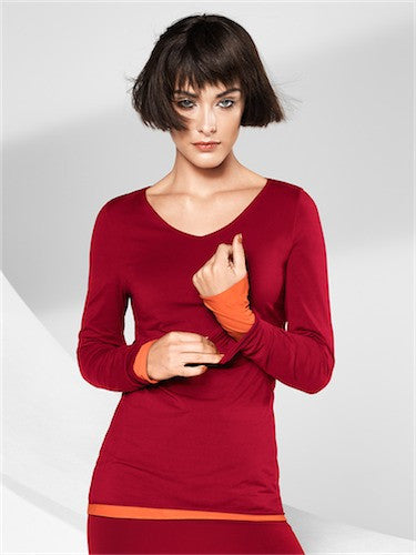 One pullover, two colours, endless combinations. Two different colours are woven into the flattering, stylish material, allowing it to be worn reversed on either side. The special production process additionally ensures that barely any seams are visible, keeping the gorgeous design in focus. The cut edges of the hems are open to show the sassy colour scheme of the overlapping layers of fabric. A versatile item for extreme comfort; perfect for work, leisure activities and travelling.