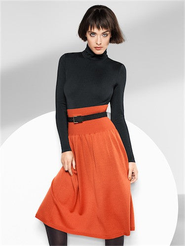 This beautifully cut knitted skirt shows modern fashion at its best. The swinging style of the hem stylishly contrasts with the figure-hugging ribbed material at the waist. The soft wool, knitted in an 10-stitch quality, additionally ensures complete comfort. The on-trend length finishes just below the knee, making this the perfect dress to wear with pumps or casual boots. Whether you opt to combine with a pullover, cardigan or a shawl from the same range, this skirt will undoubtedly create fashionable winter outfits for various occasions.