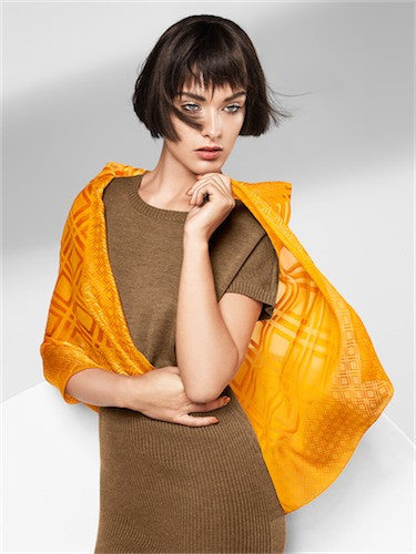 This silk scarf in an art deco style provides a dazzling accessory for autumn and winter. Due to the transparent and shimmering effect of the silk material, the colour exudes an intense luminosity. Rolled edging adds another touch of elegance and class to the scarf.