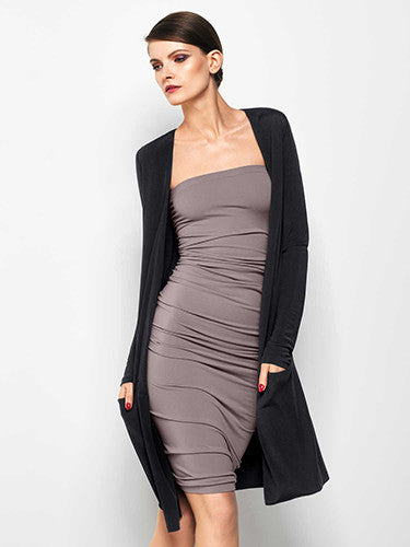 Stylishly classic, a must-have. This loosely draped jersey cardigan made from a summery, cool viscose material is the perfect choice when you want to be comfortable yet well-dressed. This casually elegant design has a few stylish extras: the double finish means that there are no visible seams and there are pockets skilfully integrated into the seam at hip level. A wonderfully versatile item, it looks perfect when worn with close-fitting dresses or slim-fit trousers.